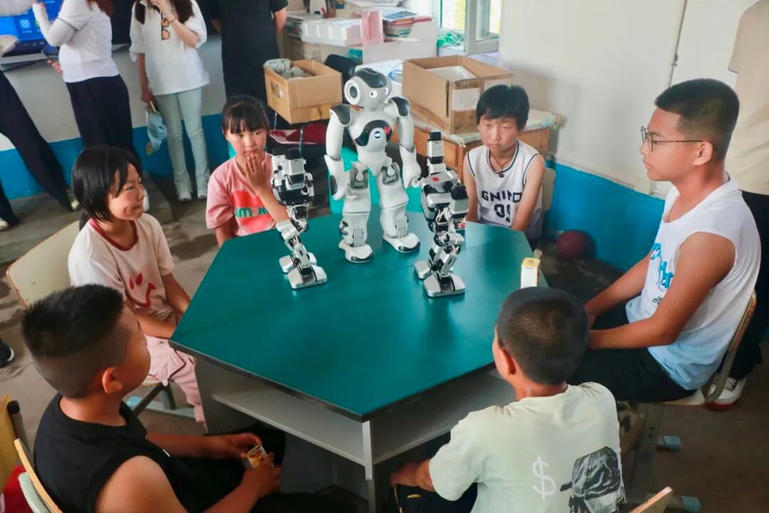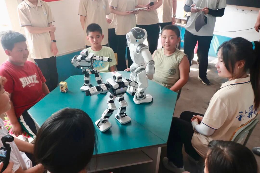 柳条乡农阁小学位于吉林省四平市双辽市柳条乡农阁村,在当地政府和相关部门支持下,为学生提供基础教育服务。学院志愿者们精心策划并开展了“AI知识进乡村”主题宣讲活动,将人工智能的核心概念及发展趋势传递给乡村学子,随后通过面对面展示机器人并通过通俗易懂的讲解,让学校的孩子们深刻感受到了科技的魅力。